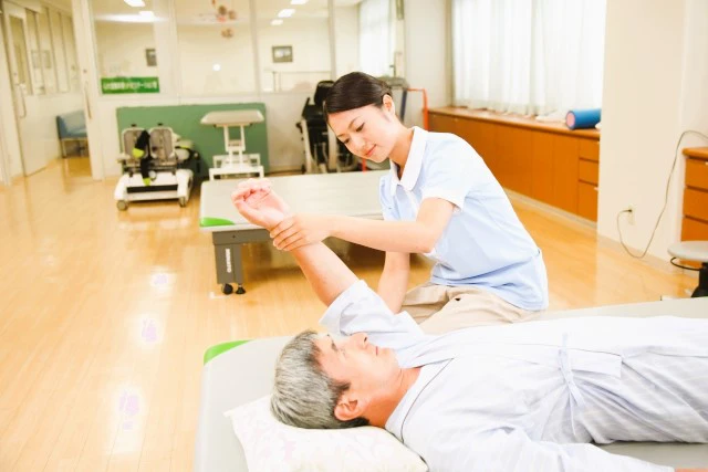 • 関節可動域の維持・改善:関節を動かさない状態が続くと、動かせる範囲が狭くなったり、動かす際に痛みが出たりすることがあります。硬くなった関節に対して、関節運動やその周囲の筋肉のストレッチを行うことで、関節の動かせる範囲を広げ、日常生活動作の維持や向上を目指します。
